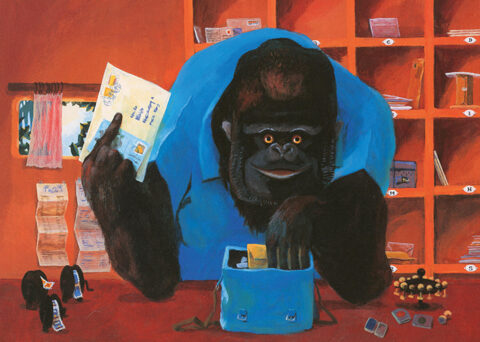 Kalt und einsam droht der Winter im hohen Norden zu werden. Doch da ist ja noch die viel versprechende Annonce, die der Ziege „warme Ohren“ bereitet: eine Postbotin wird gesucht. Im Postamt Afrika-Mitte. Kurzentschlossen bewirbt sich die Ziege und findet sich postwendend in den Weiten der afrikanischen Savanne wieder: in blauer Uniform, mit einer Tasche voller Karten, Briefe, Zeitungen und Päckchen – und einem Eilbrief für den Elefanten. Wie der Elefant aussieht, weiß Ziege zwar nicht, doch beherzt macht sie sich auf den Weg. „Dann sah sie den Elefanten. Er rannte um einen Baum und ab und zu donnerte er mit Karacho sein Horn gegen den Stamm.“ Sein Horn? Schnell klärt sich der Irrtum. Auch gut, schließlich hat sie dem Nashorn eine Zeitschrift zu überbringen. Zudem wird dieses doch den Weg zum Elefanten kennen, oder? Das amüsante Spiel mit der fehlenden Artenkenntnis wird fortgesetzt und Ziege begegnet erst Löwe, Zebra, Schlange, Gnu und Krokodil, bis sie letztlich auf den „richtigen“ Elefanten stößt. Mit fast – wie nebenbei – geleerter Posttasche kann Ziege endlich den Eilbrief übergeben. Dass dieser eine Nachricht enthält, die ihren Feierabend versüßen wird, ist zugleich der Beginn einer wunderbaren Freundschaft.